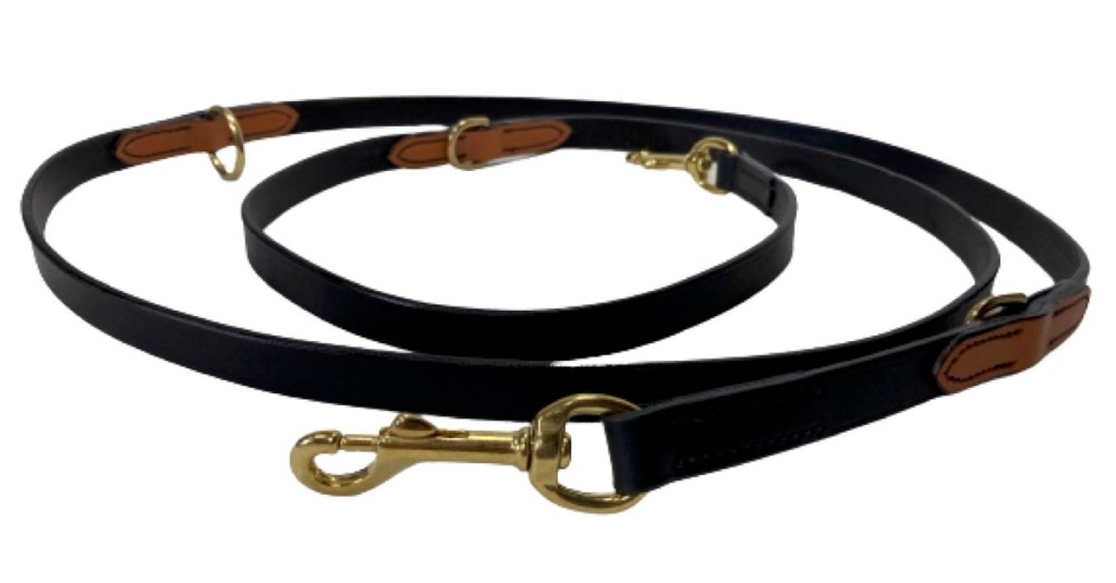 - Laisse de chasse (ou laisse éducative) longueur 2 mètres, largeur 16 ou 18 mm en cuir noir et irish, bouclerie laiton cousue main (autres couleurs possibles) :