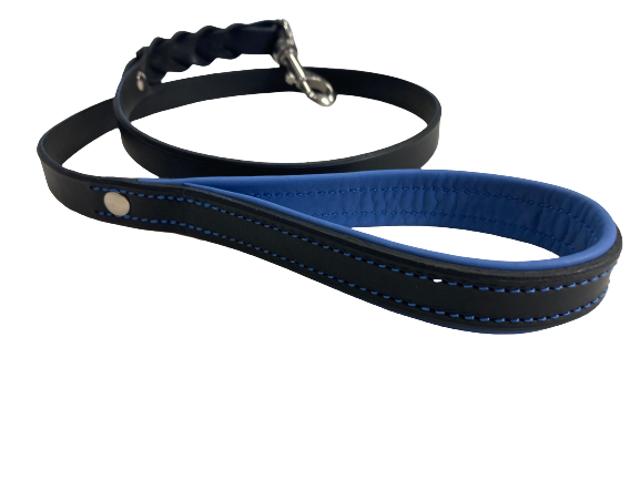 - Laisse en cuir avec poignée doublée, simple ou lacée, lisse ou tressée au niveau du mousqueton longueur 1 m ou 1,50 mètre, cousue main :