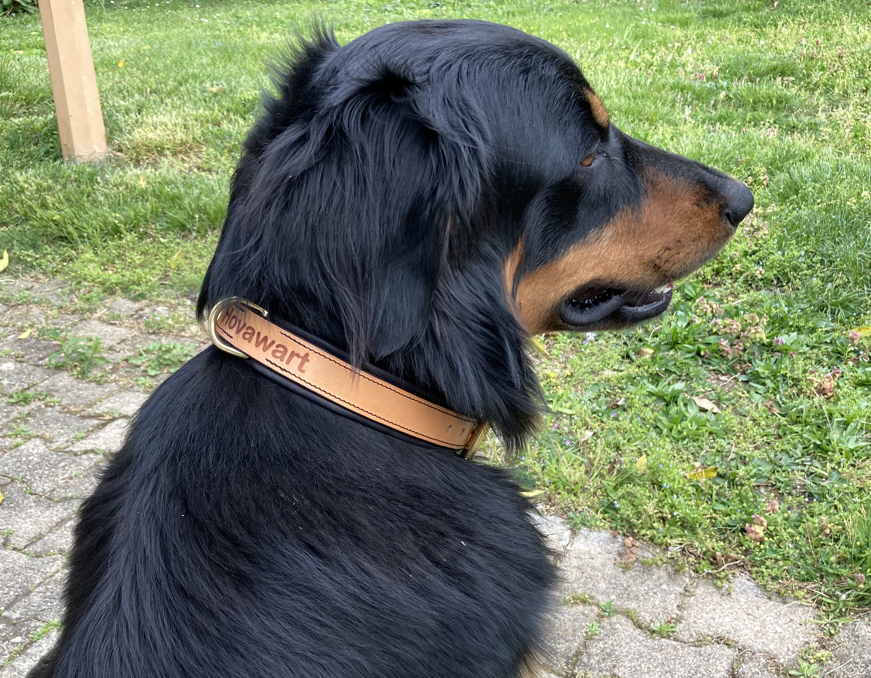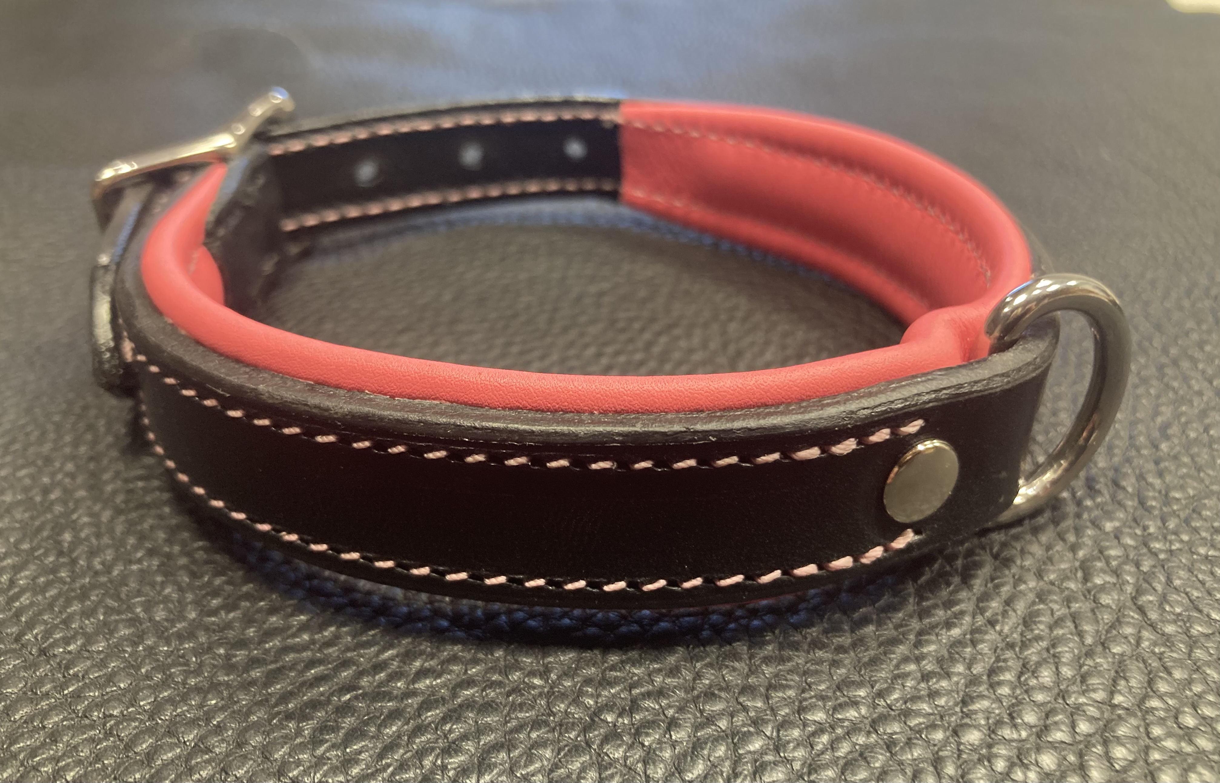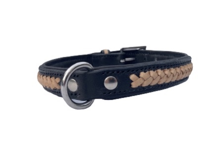 - Colliers tout cuir ou doublés, lisses ou tressés, simples ou de luxe, avec possibilité de laisses assorties.