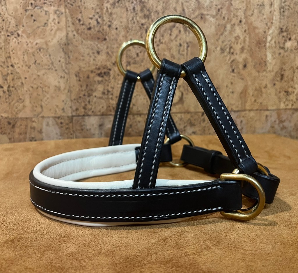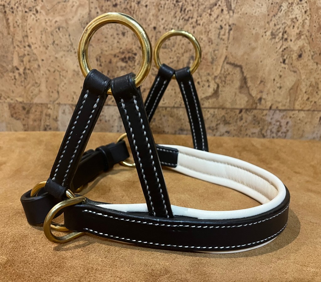 - Muserolle pour side-pull cuir noir doublure veau crème, bouclerie laiton