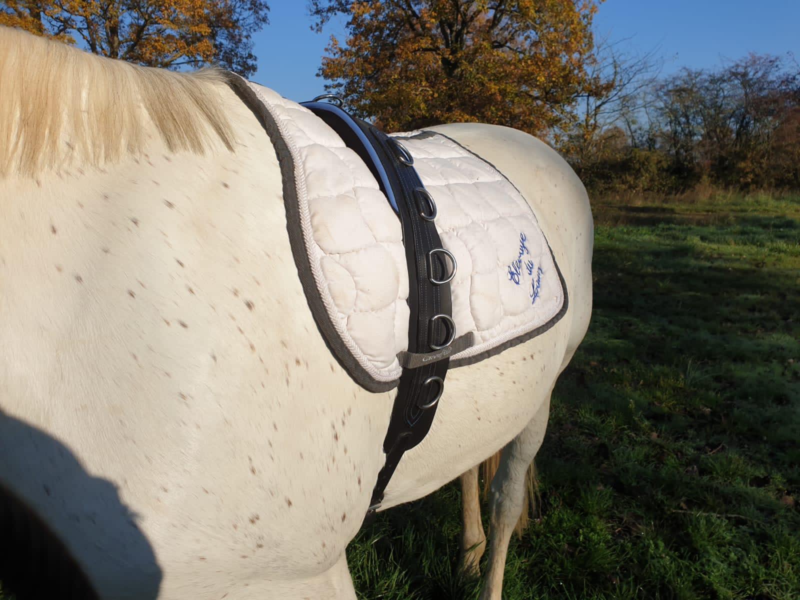 - Sangle tout cuir doublée en mousse et veau noir, bouclerie inox, cousue main et piquée au fil noir.
