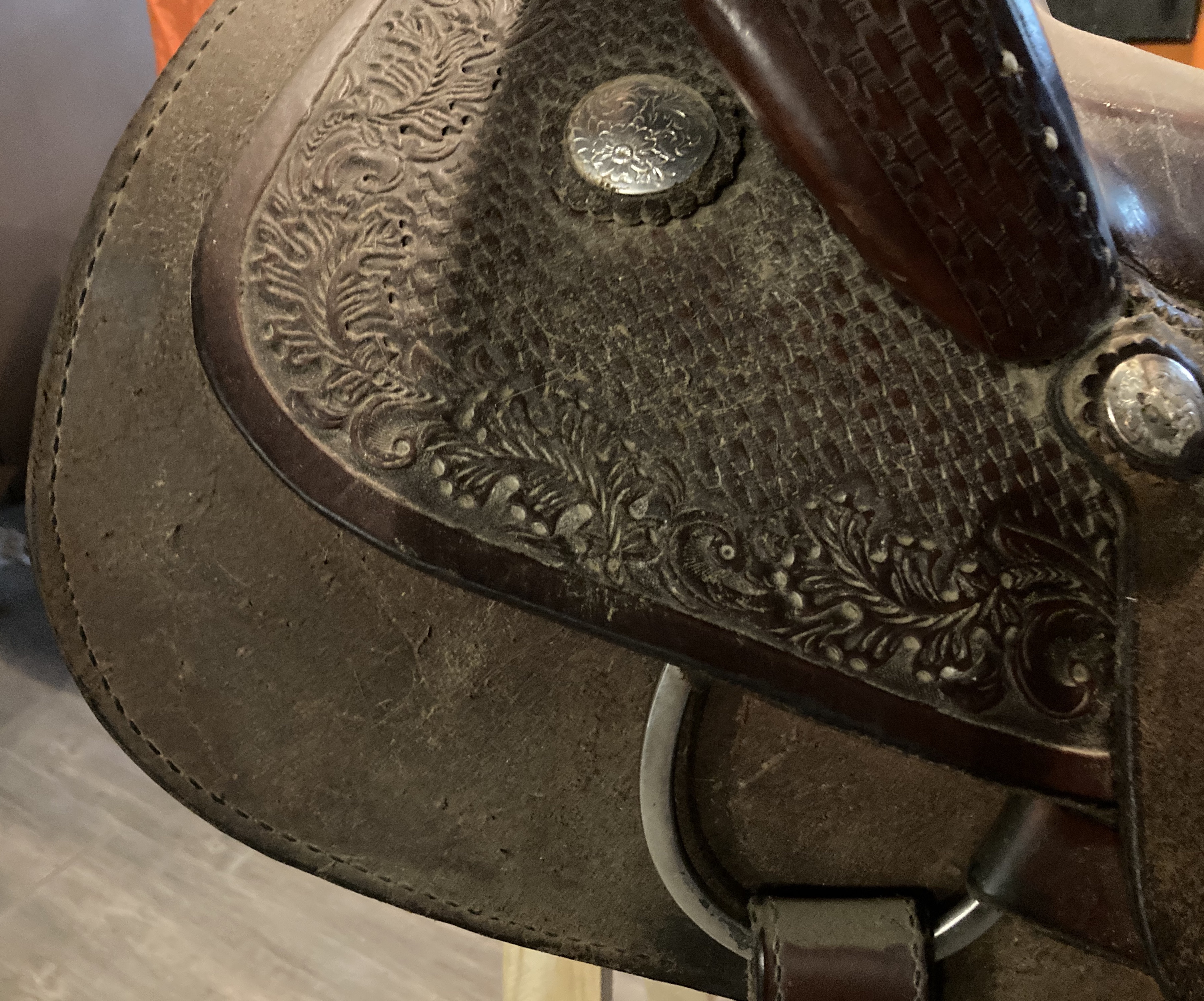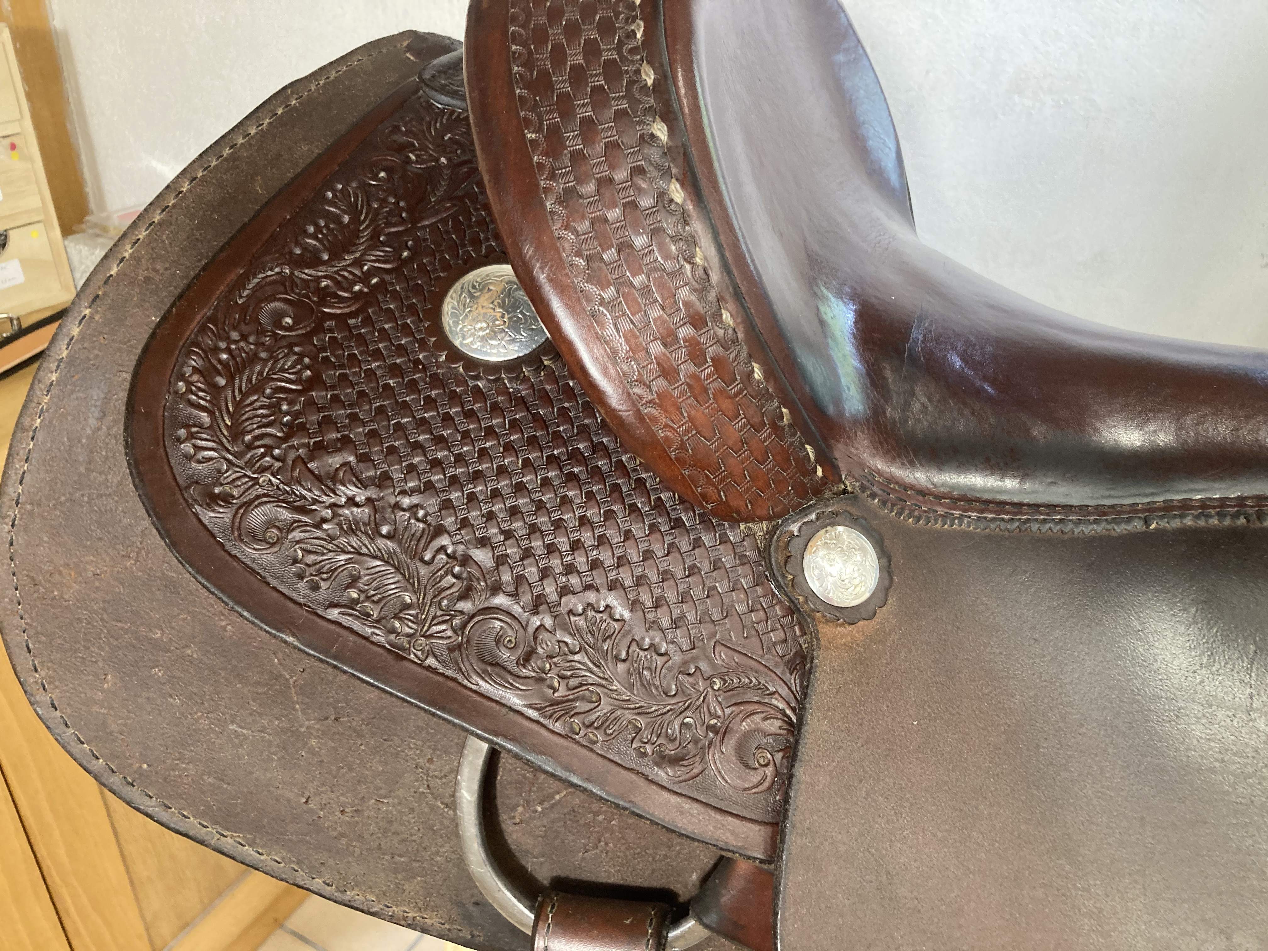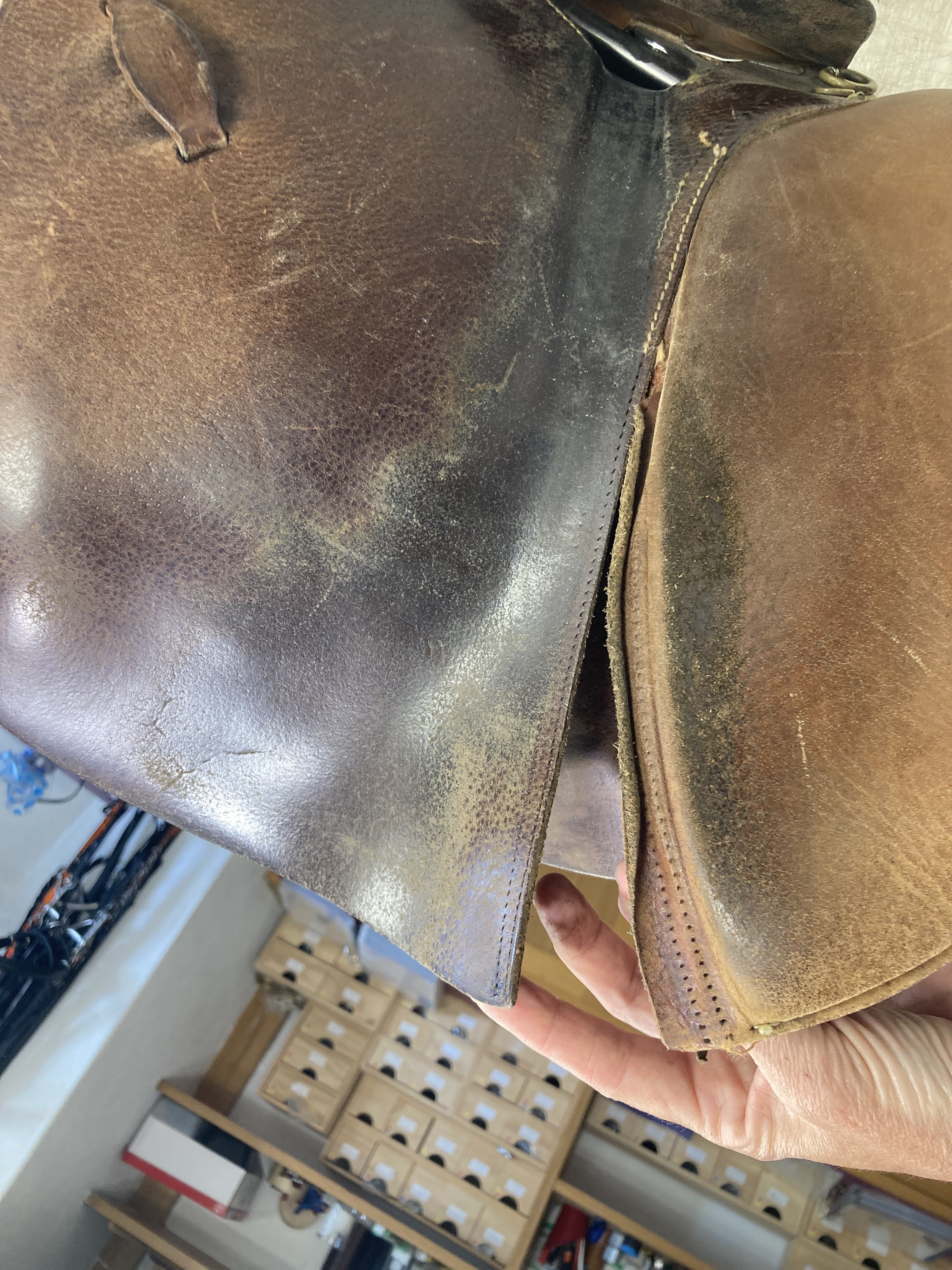 Exemple de nettoyage et nourrissage de selles Western et de leurs accessoires (photos avant/après) :